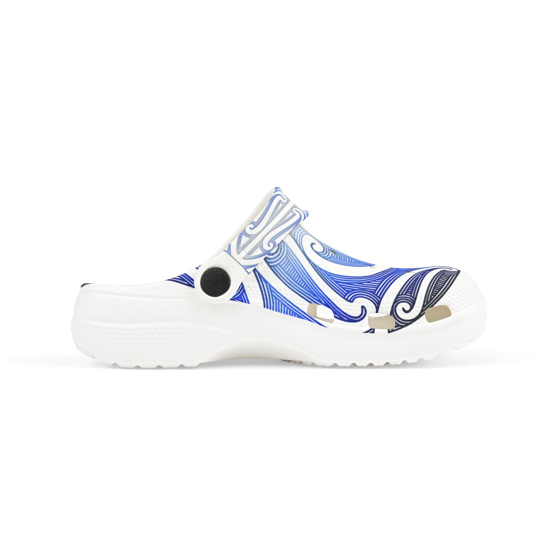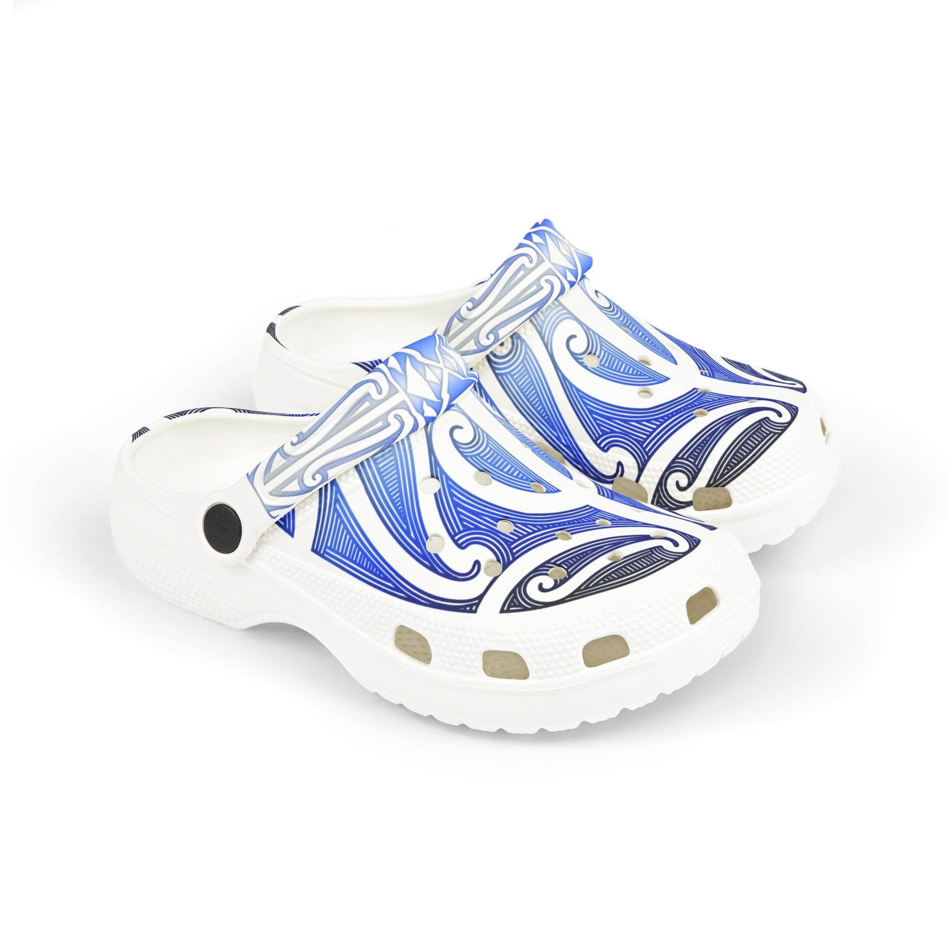 Each pair has ataahua Māori-inspired patterns that make them super special—just like you! And guess what? They even come with surprise koraka charms in fun shapes to decorate your shoes!